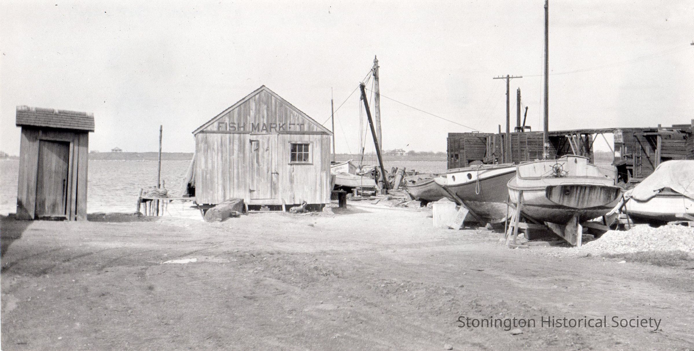 Black and white photograph of Pendleton's Coal Sheds (now Bindloss Dock), Stonington Borough, c.1915. Photo belonged to Henry R. Palmer, Jr.