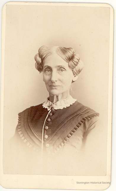Head and shoulders photo of unidentified older woman in dark dress, white collar.