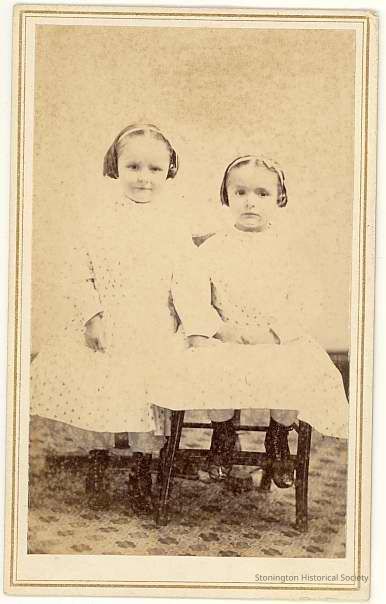 Full seated photo of two unidentified girls, approximately 4 and 6 years old Photo by Scholfield, Westerly RI
