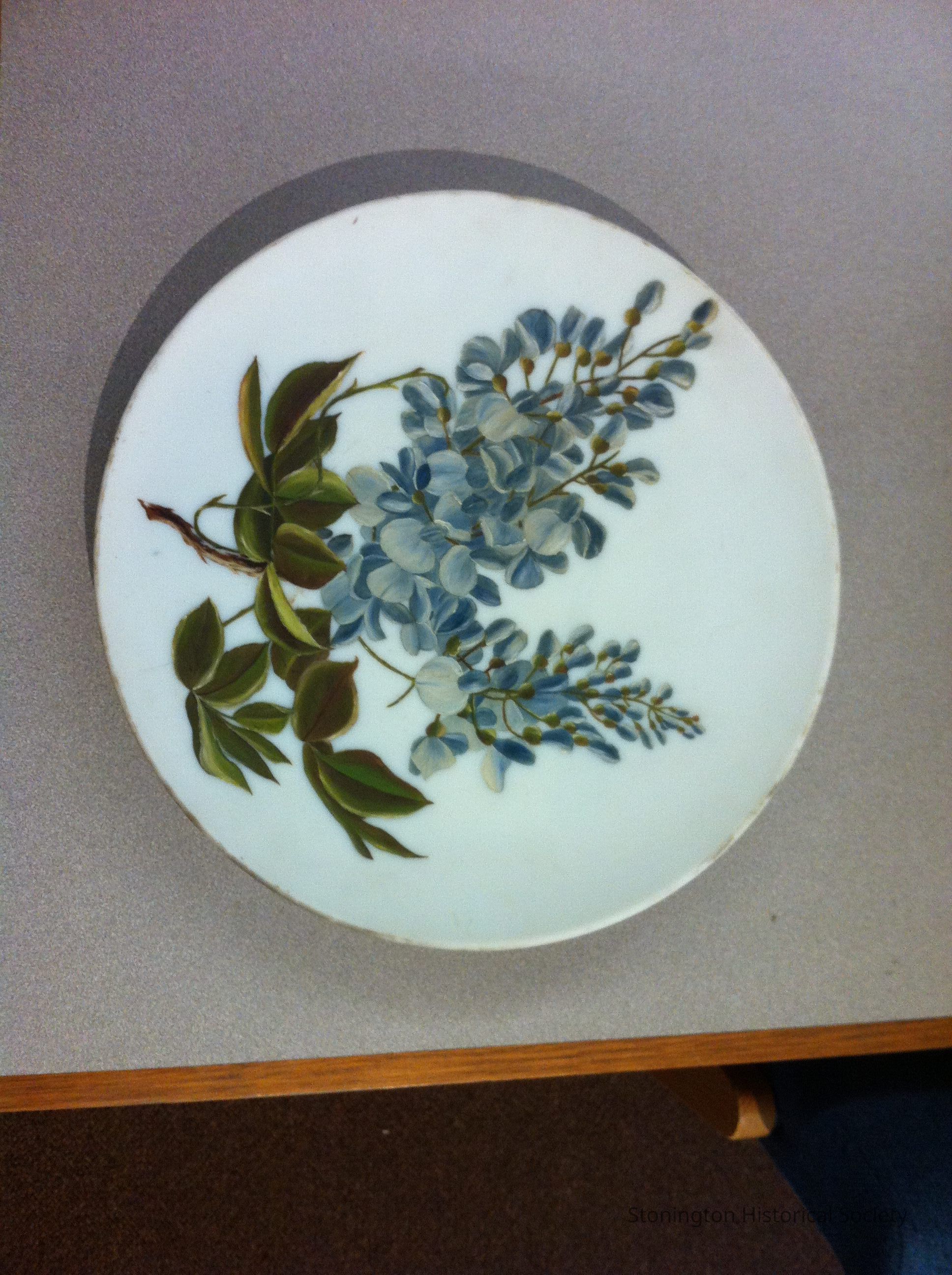 paper tag taped to back: "painted by Bess Saunders (Bessie Burtch Chesebro) born 1874 in Stonington, wife of Durwood Guy Saunders (1872-1950) born and died in Westerly