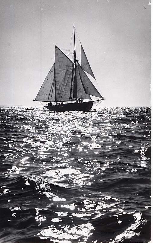 Multi-masted sailing vessel under full sail. 2 copies