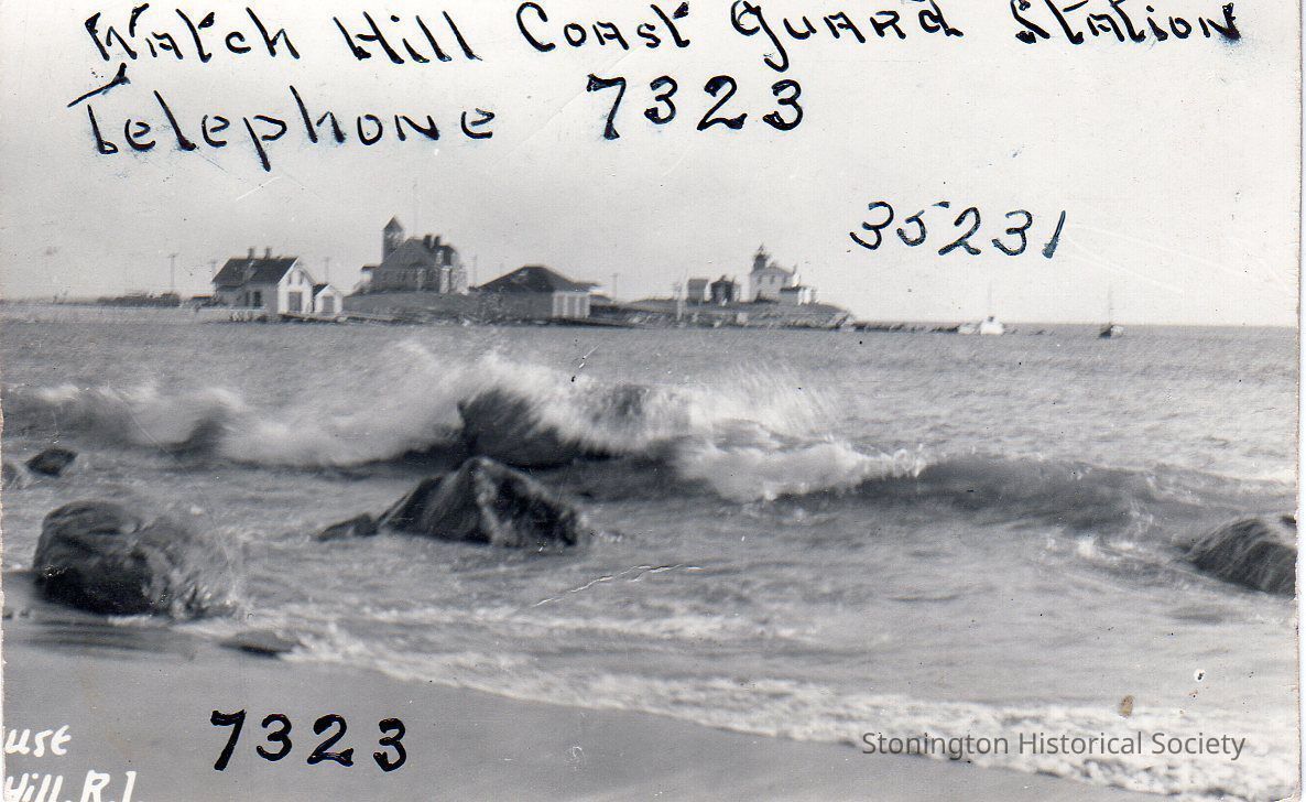 Black and white postcard, "Watch Hill Coast Guard Station, Telephone 7323, 35231". Watch Hill, RI.