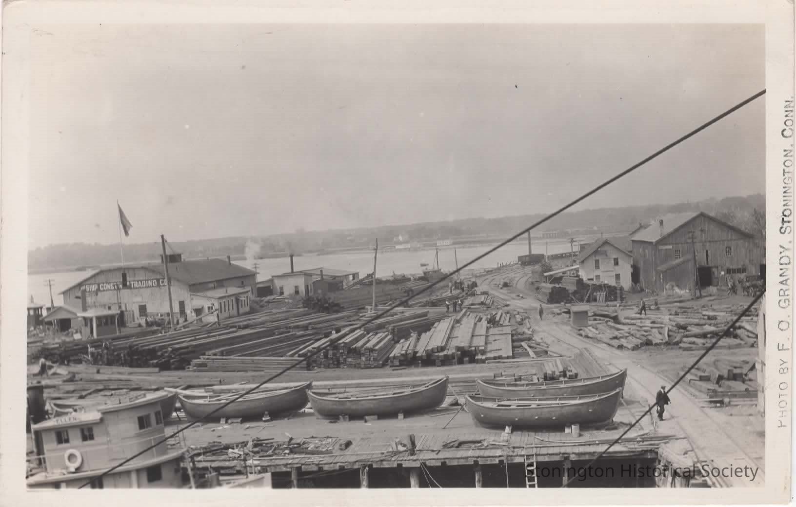black and white photo postcard of the Stonington Ship Construction and Trading Co. yard. The ELLEN can be seen in the left foreground. Photographed by F. O. Grandy. 2 copiesCollection