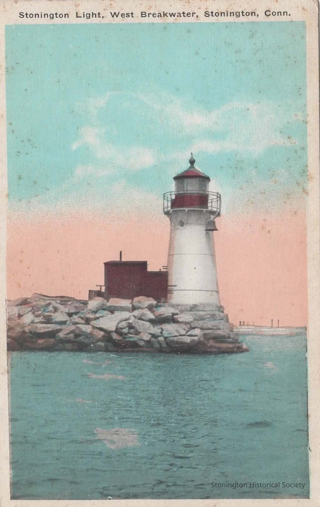 color postcard, "Stonington Light, West Breakwater, Stonington, Conn."