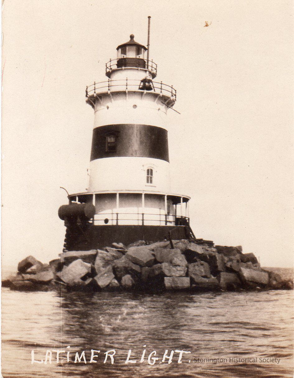 Black and white postcard, Latimer Light, Fishers Island Sound.