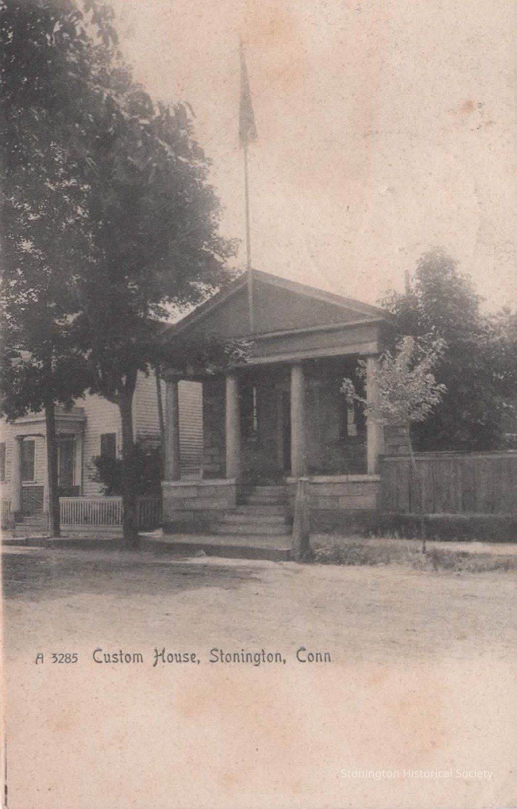 black and white postcard, "Custom House, Stonington, Conn." addressed to Miss Mary J. Babcock, c/o Mrs. Mattie Baker, from "Amelia", postmarked in Stonington, August 30, 1911.