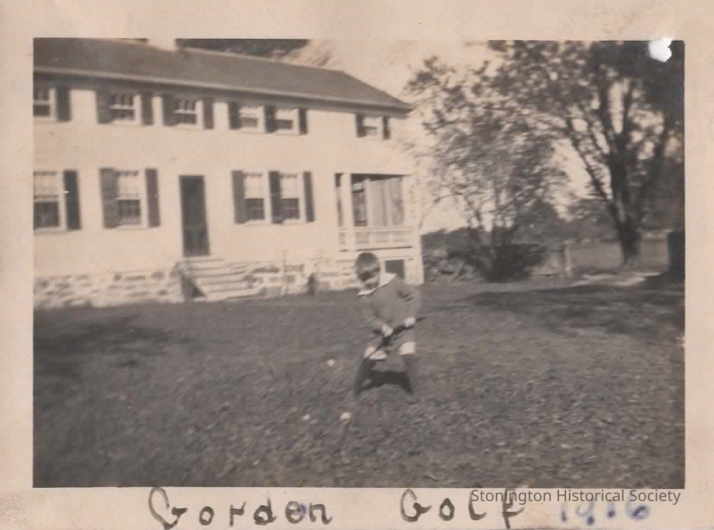 black and white snapshot, Gordon Streeter playing golf at Red Brook, taken from the Helen Streeter Photograph Album, 1916-1917.Collection