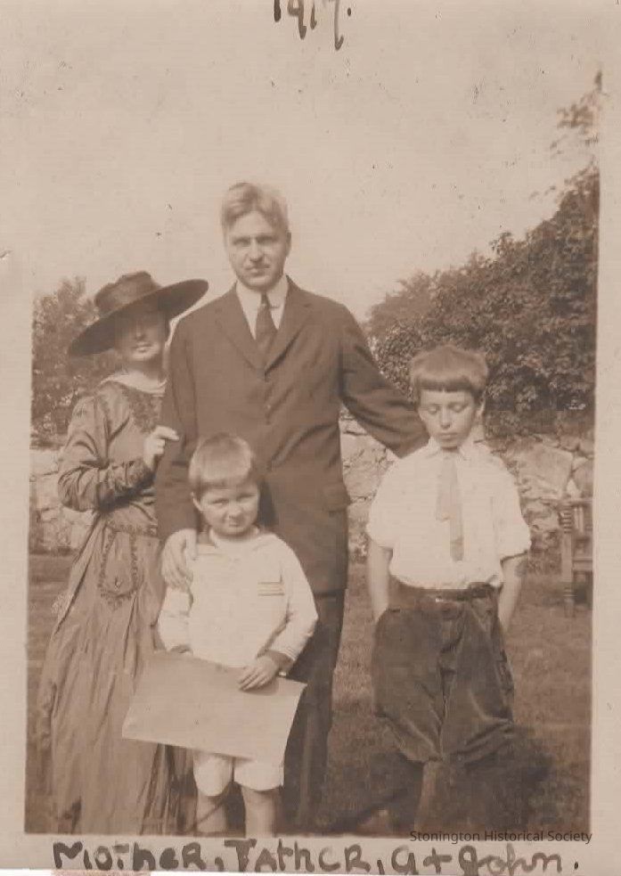 black and white snapshot "Mother, Father, Gordon & John, 1917" taken from the Helen Streeter Photograph Album, 1916-1917.Collection