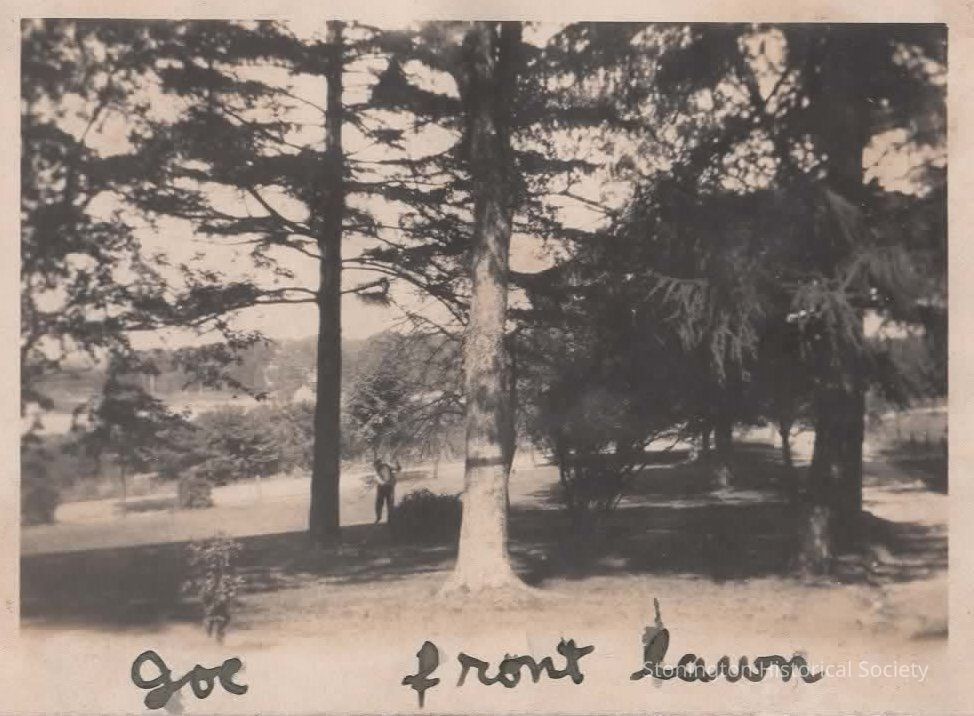 black and white snapshot, Joe on the front lawn at Red Brook, taken from the Helen Streeter Photograph Album, 1916-1917.Collection