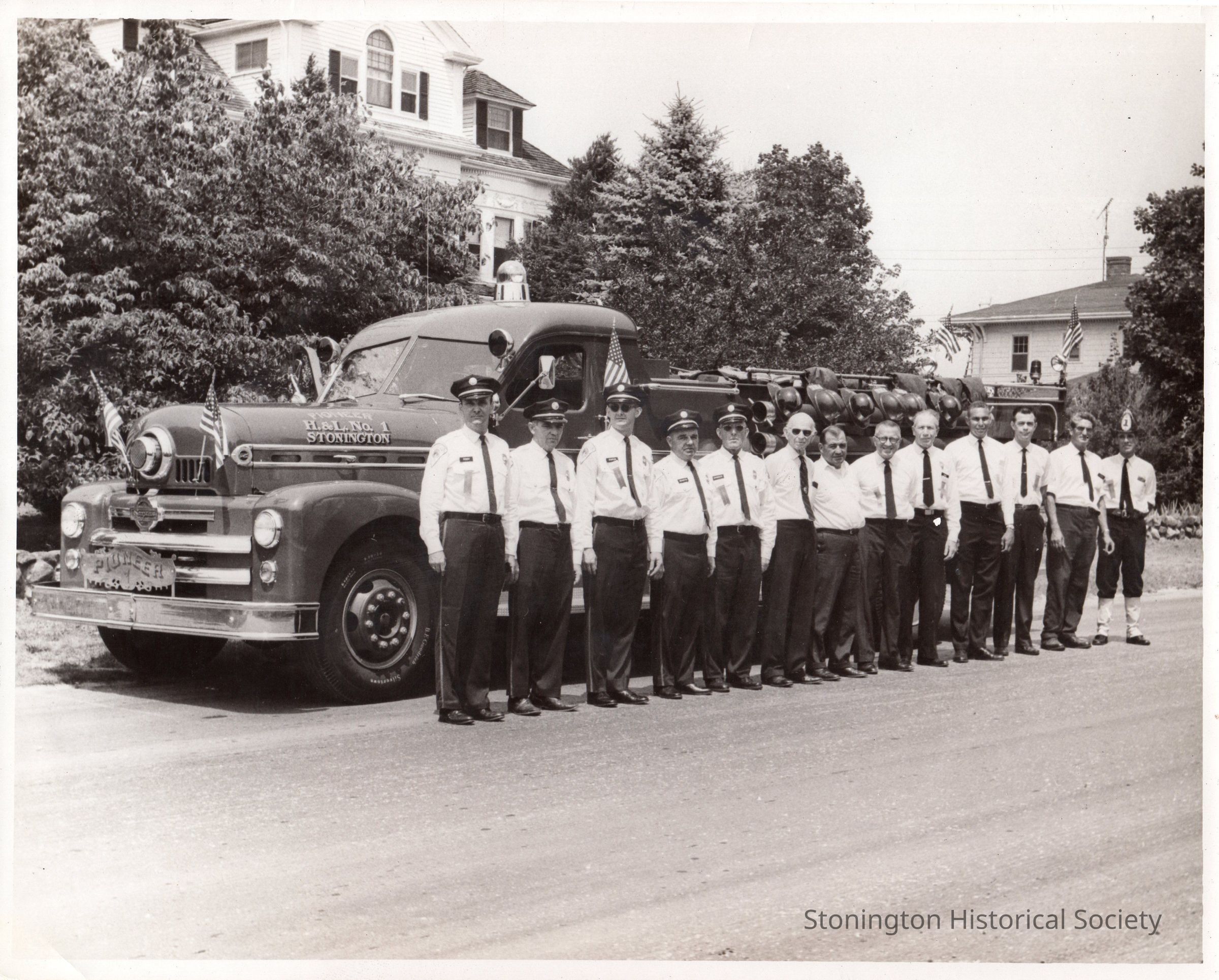 Black and white photograph of the Pioneer Hook & Ladder Co. (Stonington Fire Department)