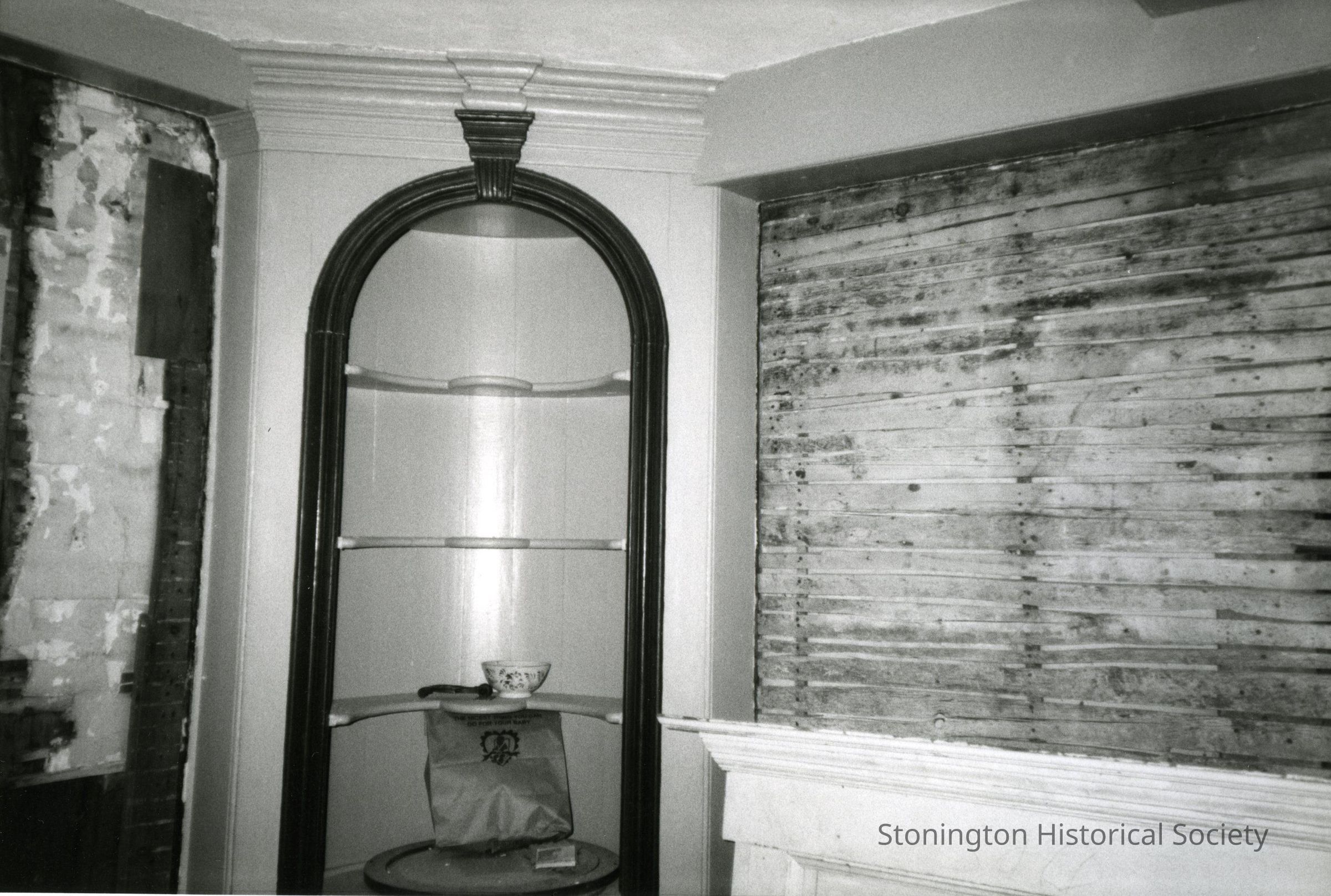 black and white photograph, Nehemiah Palmer House, Greenhaven Road, front room, left side of the hosue, c. 1990 #8A