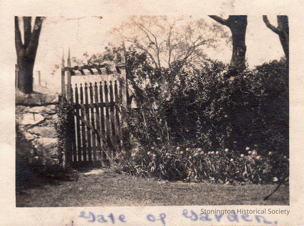 black and white snapshot, "Gate of Garden" at the Streeter family home Red Brook, taken from the Helen Streeter Photograph Album, 1916-1917.Collection