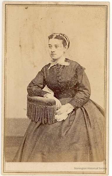 3/4 seated photo of Caroline M. Noyes Hilliard with right arm leaning on arm of chair. Duplicate of 1993.005.0302