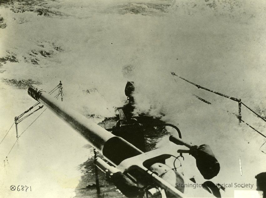 black and white photograph, turret on deck of unknown vessel, stamped "U.S. Official"