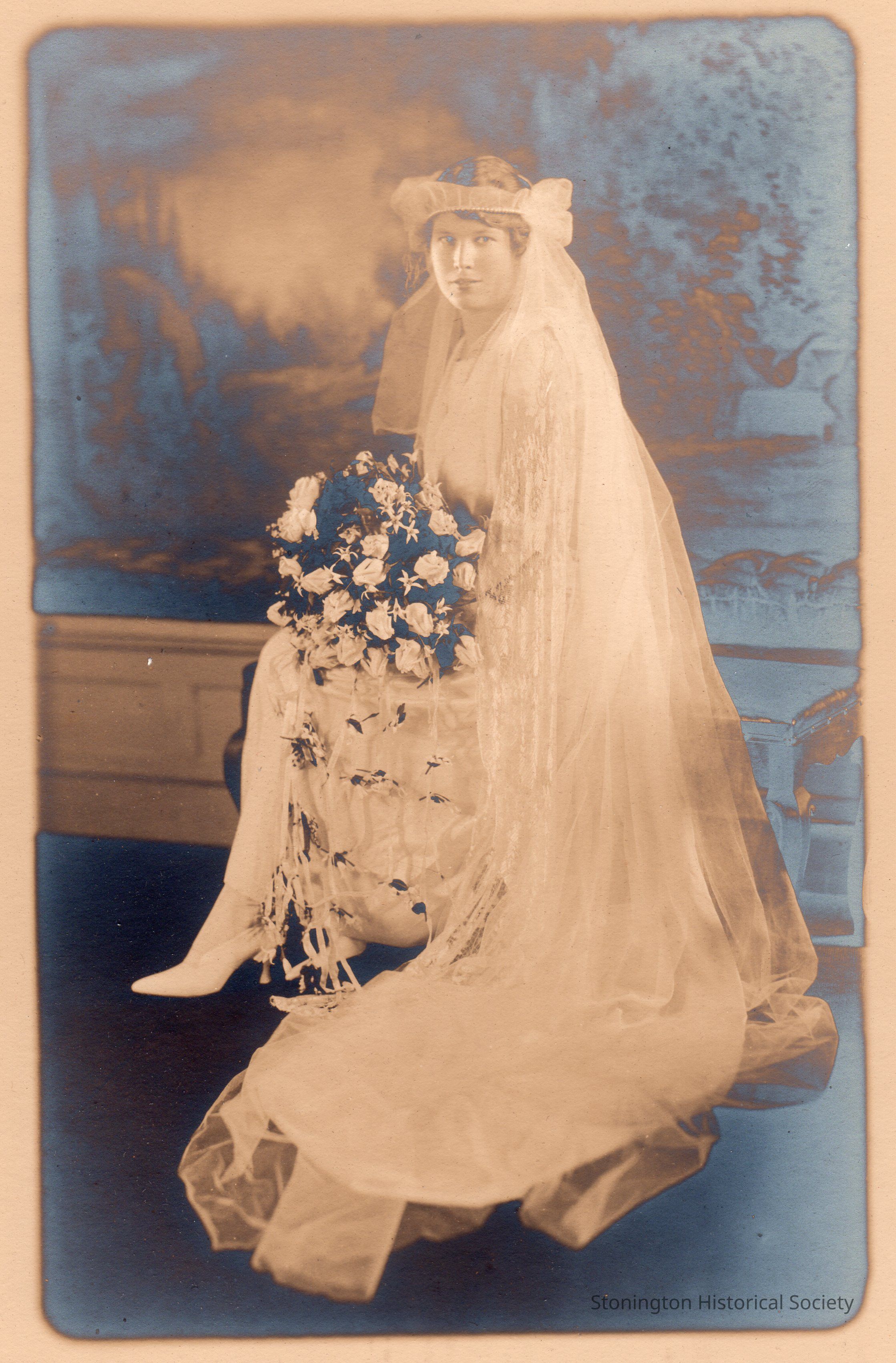 Photograph portrait of Edwina Ryon (1895-1980) in board frame, in her wedding dress, by Louis Oliver, Providence, RI. Edwina married David Reynolds Gray of Providence, RI between 1920-1922.Collection