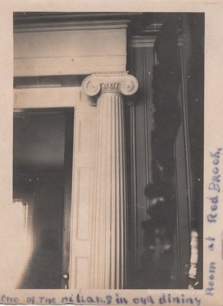 black and white snapshot "One of the pillars in our dining room at Red Brook," taken from the Helen Streeter Photograph Album, 1916Collection