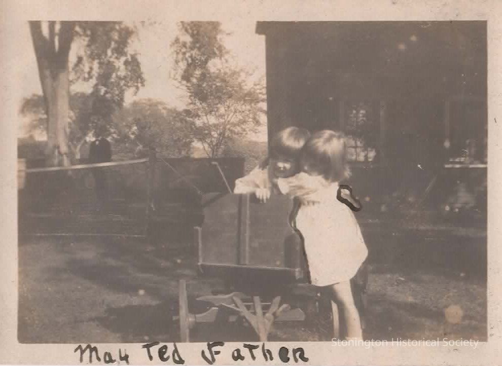 black and white snapshot "May, Ted, Father [Edward Streeter]," taken from the Helen Streeter Photograph Album, 1916Collection