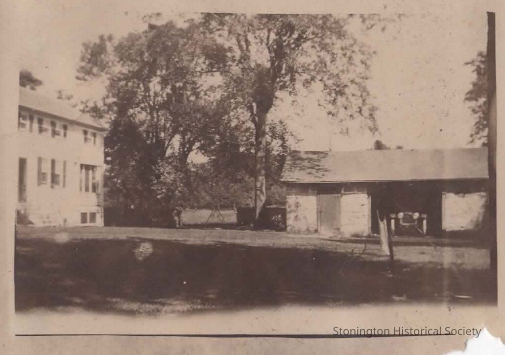 black and white snapshot, exterior of Red Brook home and garage, taken from the Helen Streeter Photograph Album, 1916-1917.Collection