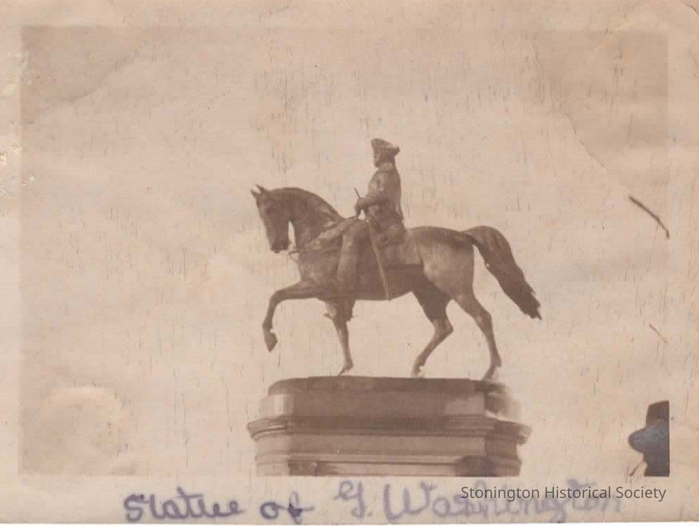 black and white snapshot, statue of George Washington in Boston Commonwealth, taken from the Helen Streeter Photograph Album, 1916-1917.Collection