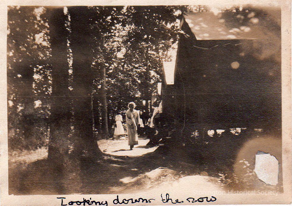 black and white snapshot, "Looking Down the Row" at Camp Mystic, August 1918, taken from the Helen Streeter Photograph Album, 1918.Collection