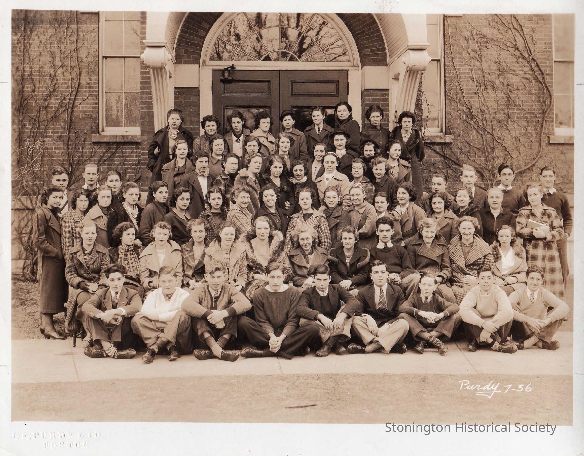 12 photographs - class pictures of West Broad Street School and Stonington High School Students at the Borough School, 1936