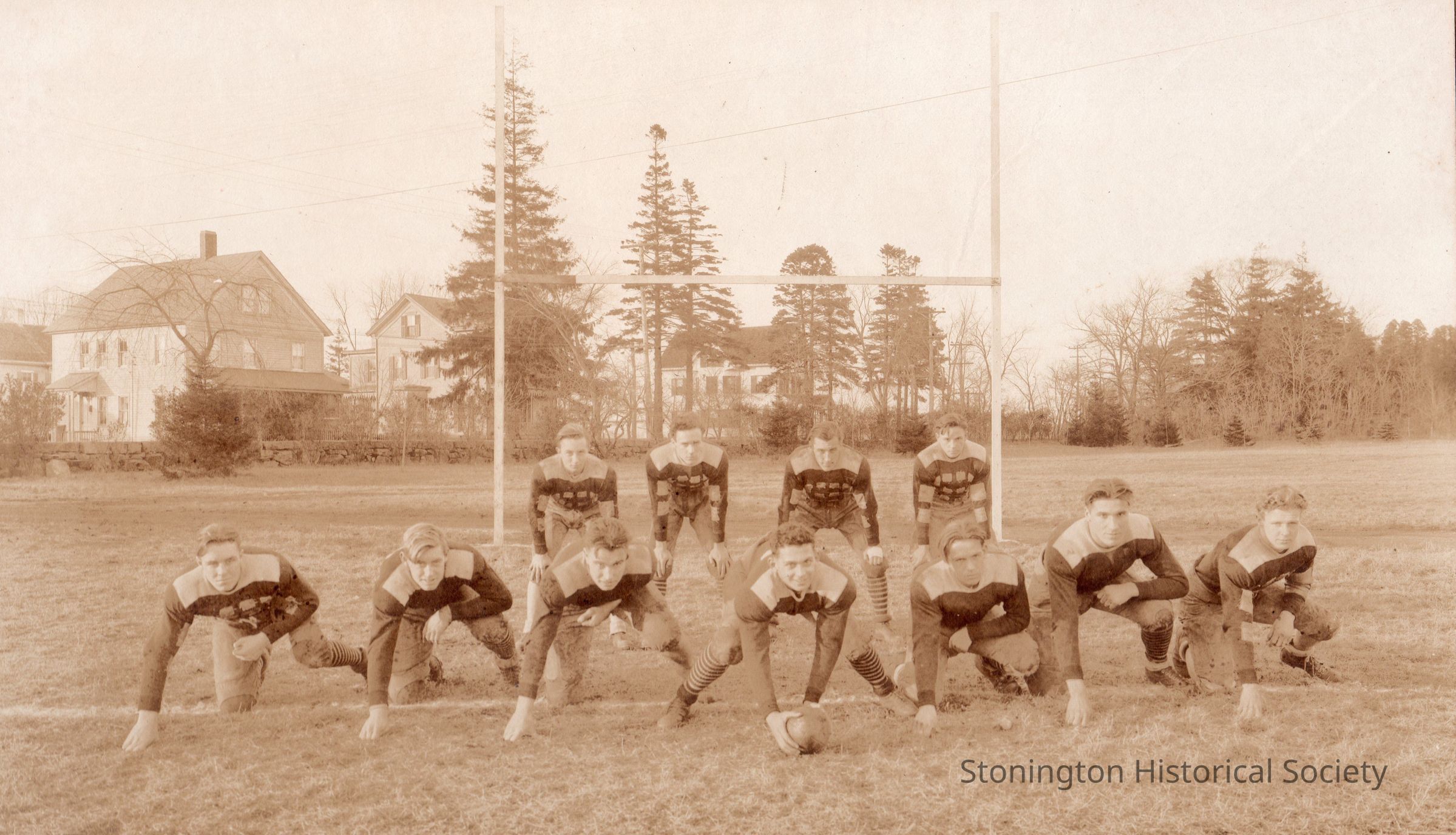 photograph, sepia mounted on board, Stonington High School Football Team, 1920s. Photographed by Ed N. Burdick, Westerly, RI.