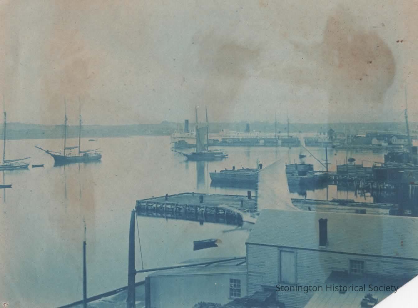 Cyanotype, "Stonington Harbor, taken from Atwood Machine Company building."