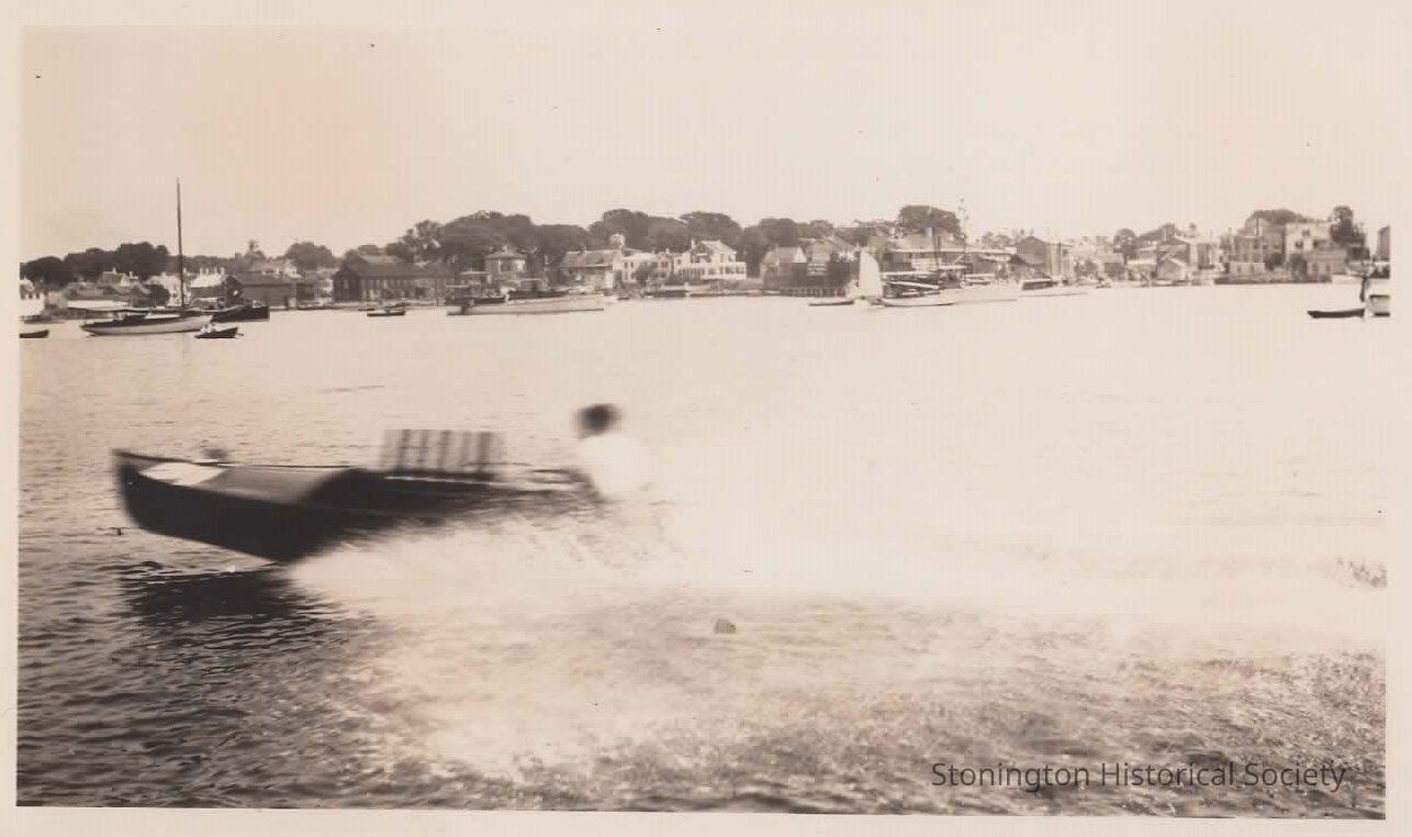 Photograph, motorboat in Stonington Harbor, photographed August 1914 for the Battle of Stonington Centennial.