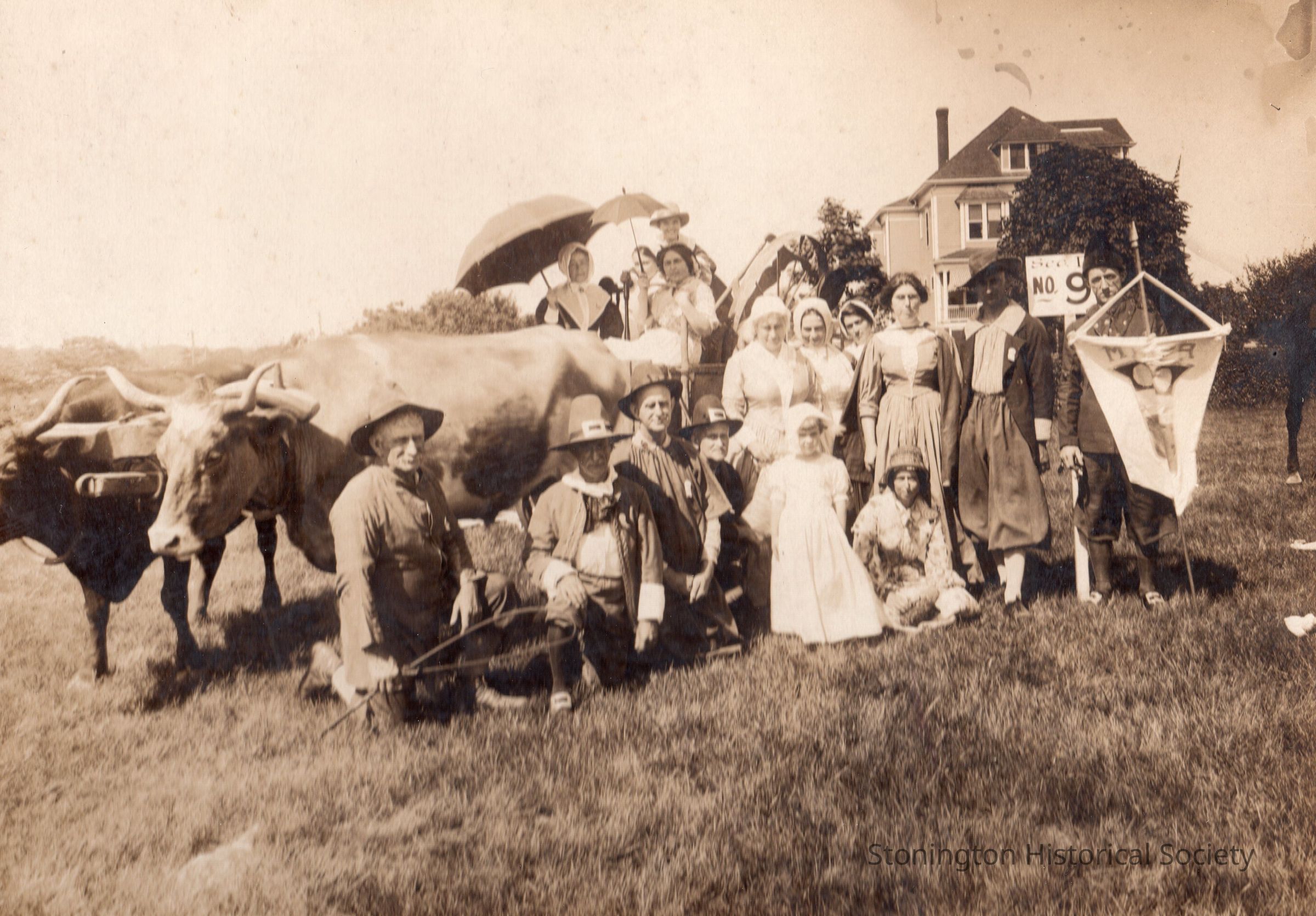 Sepia photograph, the Miner family dressed for the Stonington Battle Centenary Pageant, August 1914. From collection of photographs of Stonington "Gentry."