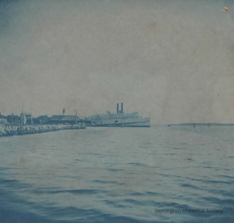 Cyantotype, "Upper Harbor," steamers docked in Stonington.