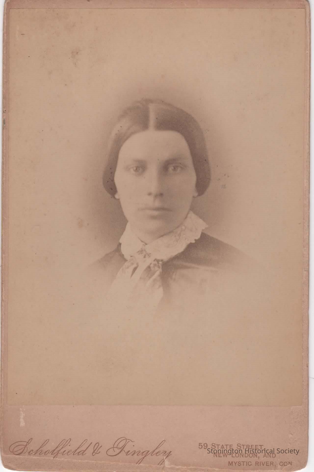 Photograph portrait of Mary Elizabeth Green Miner (1827-1884), under glass (additional photograph copy mounted on board, taken by Scholfield & Tingley, Mystic River, Conn.)