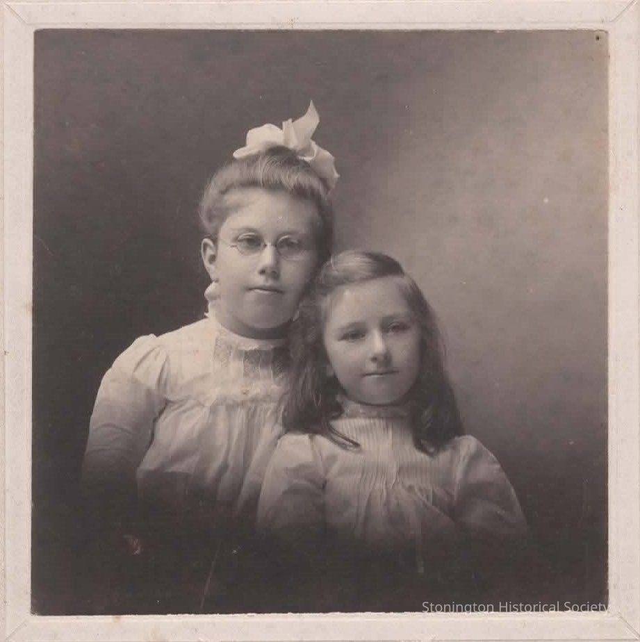 photograph of Grace and Pauline Miner, aged 9 and 6, at Cove Road, Stonington, photographed by George Tingley, c. 1903