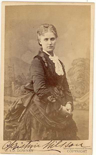 3/4 standing portrait of woman against a mural backdrop, Christine Wilson written on bottom of photo.Collection