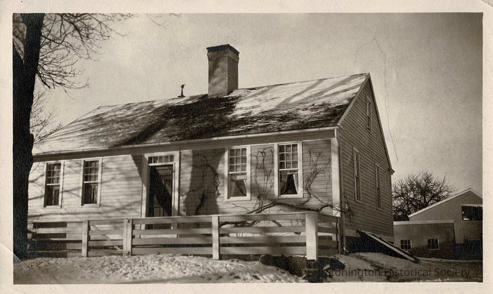 Small cottage on the property of Stone Acres, across from low barn buildings. The date on the back of the photograph reads 1910.