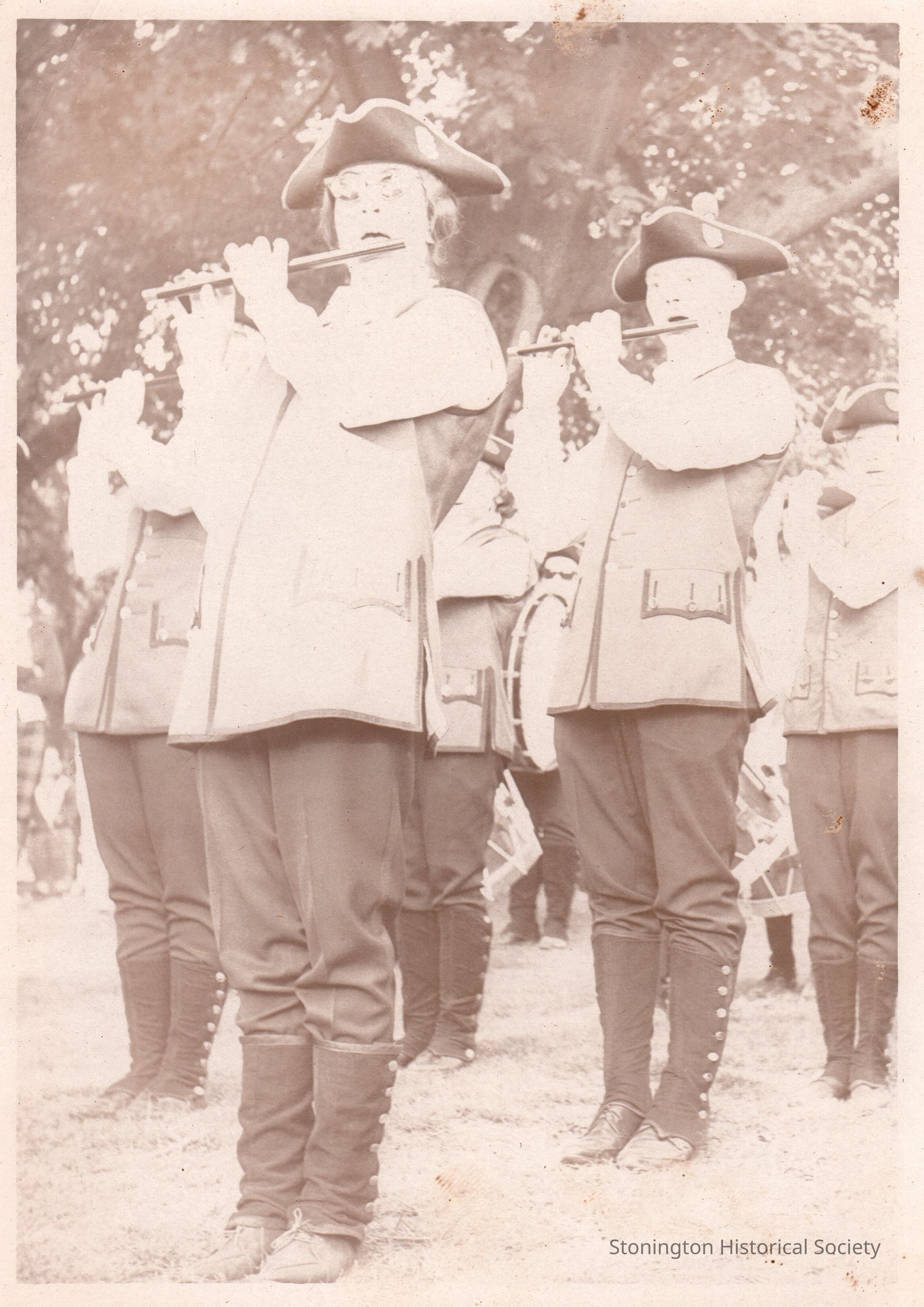 Black and white photograph (2 copies) of the Deep River fife & drum corps at the "Point Celebration" in Stonington, August 1964Collection
