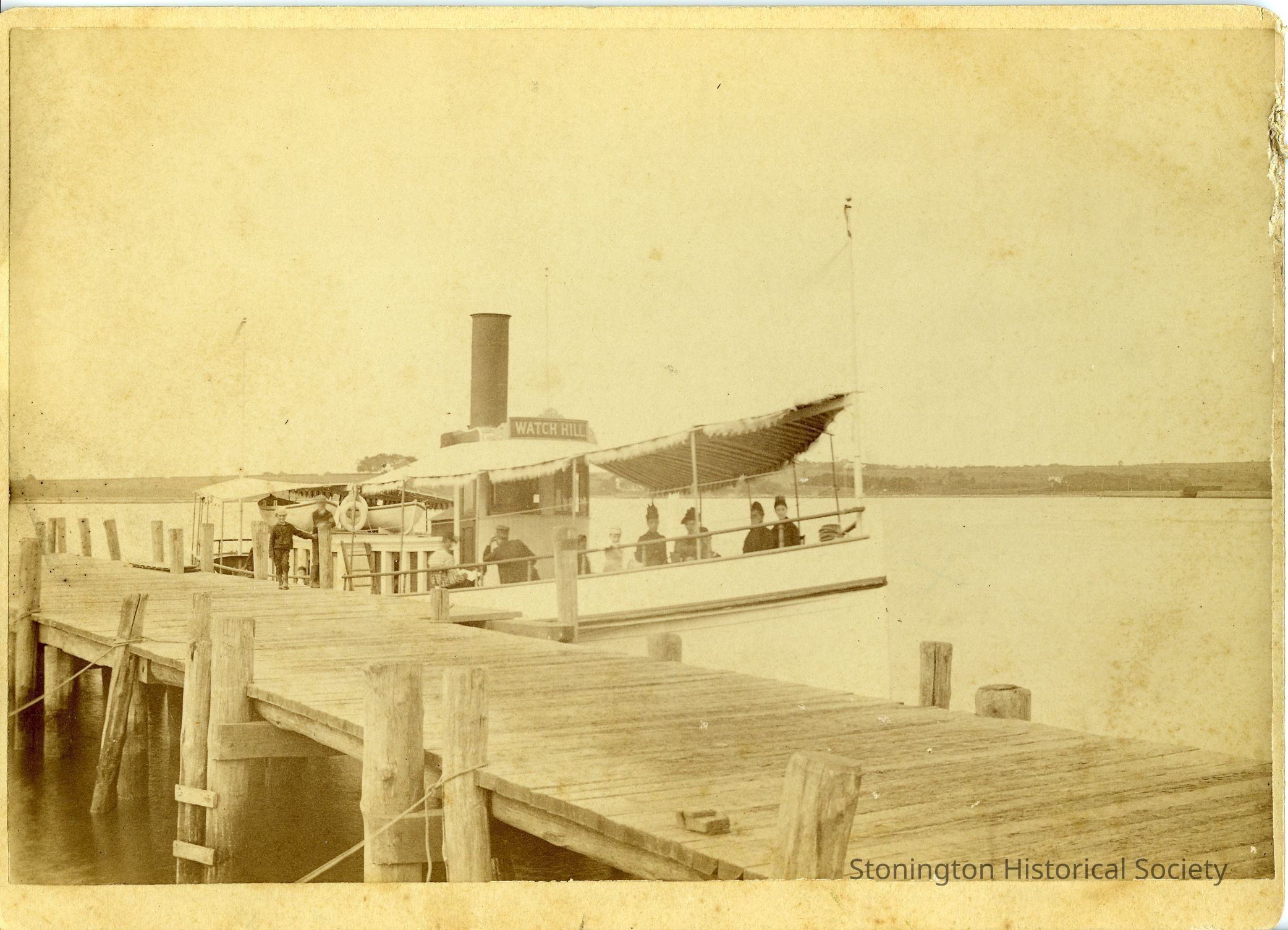 photograph, Watch Hill steamboat off dock in Stonington (later location of Dodson's)