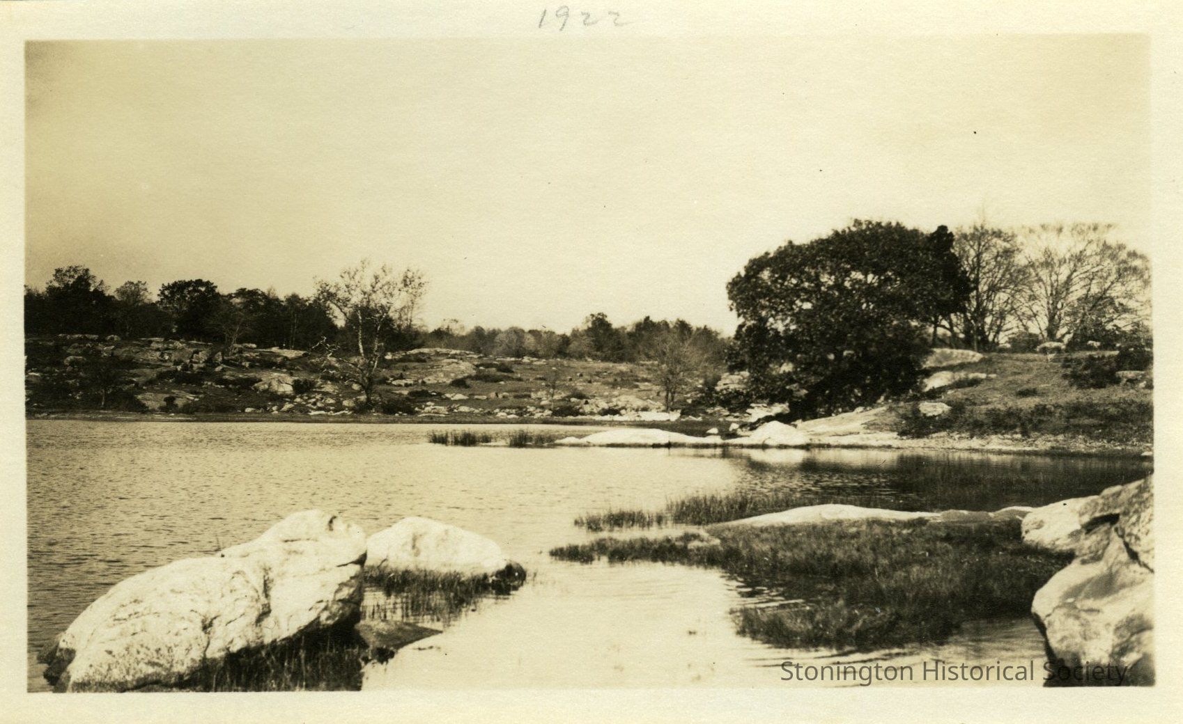 Photograph of a landscape on the Stone Acres property, most likely Quanaduck Cove, c. 1922