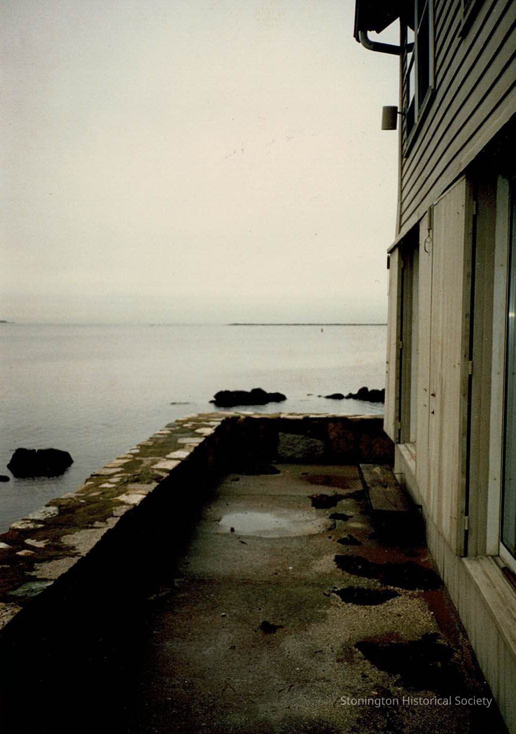Color photograph of a stone patio near the ocean. Could be from Rollie's house in Stonington or Florida.