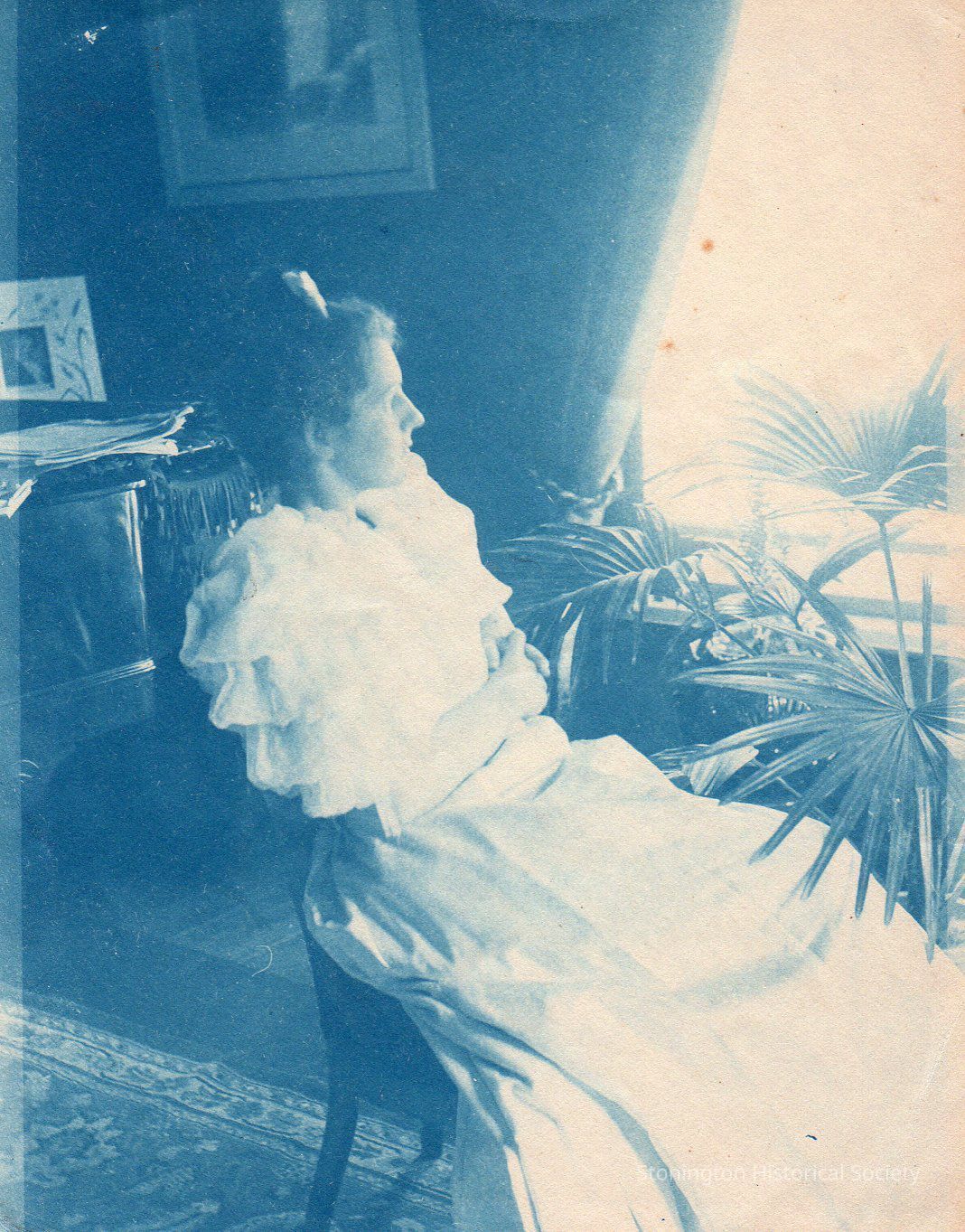 Cyanotype print of Eliza "Lila" Adams Edwards seated inside