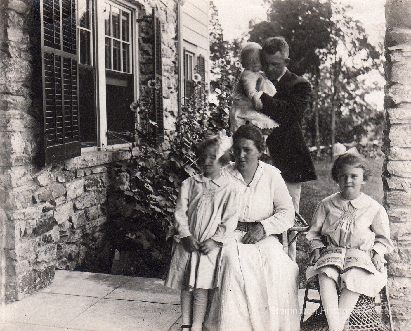 black and white photograph of Elizabeth, Jane, Fred Jr., Helen and Dr. Frederic C. Paffard, July 1916