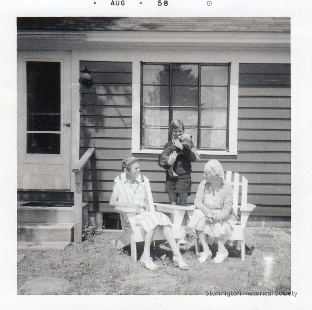 black and white snapshot of Wynne Paffard with her great aunt Ethel Paffard Henderson and Jean Henderson, August 1958