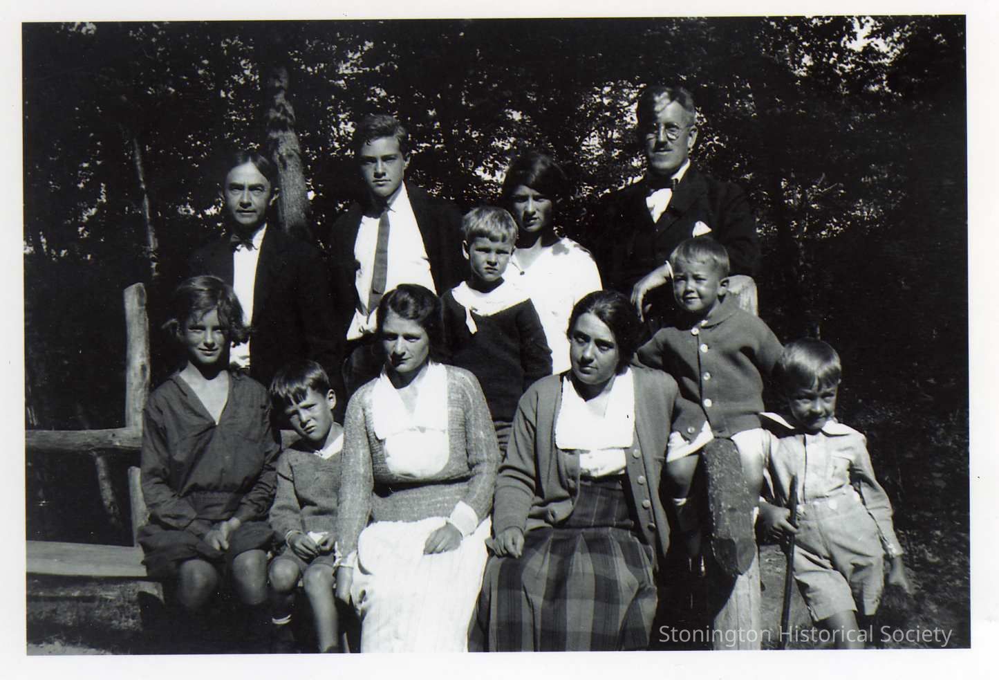Group photograph of Anderson family members. Not identified but Arthur and Robert are standing in the back row on the left.