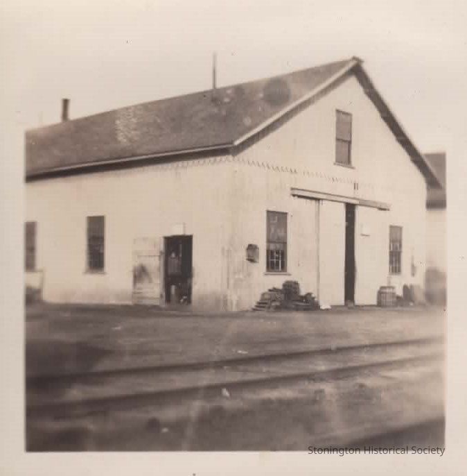 Black and white snapshot, "Bailer shop on Steamboat Wharf."