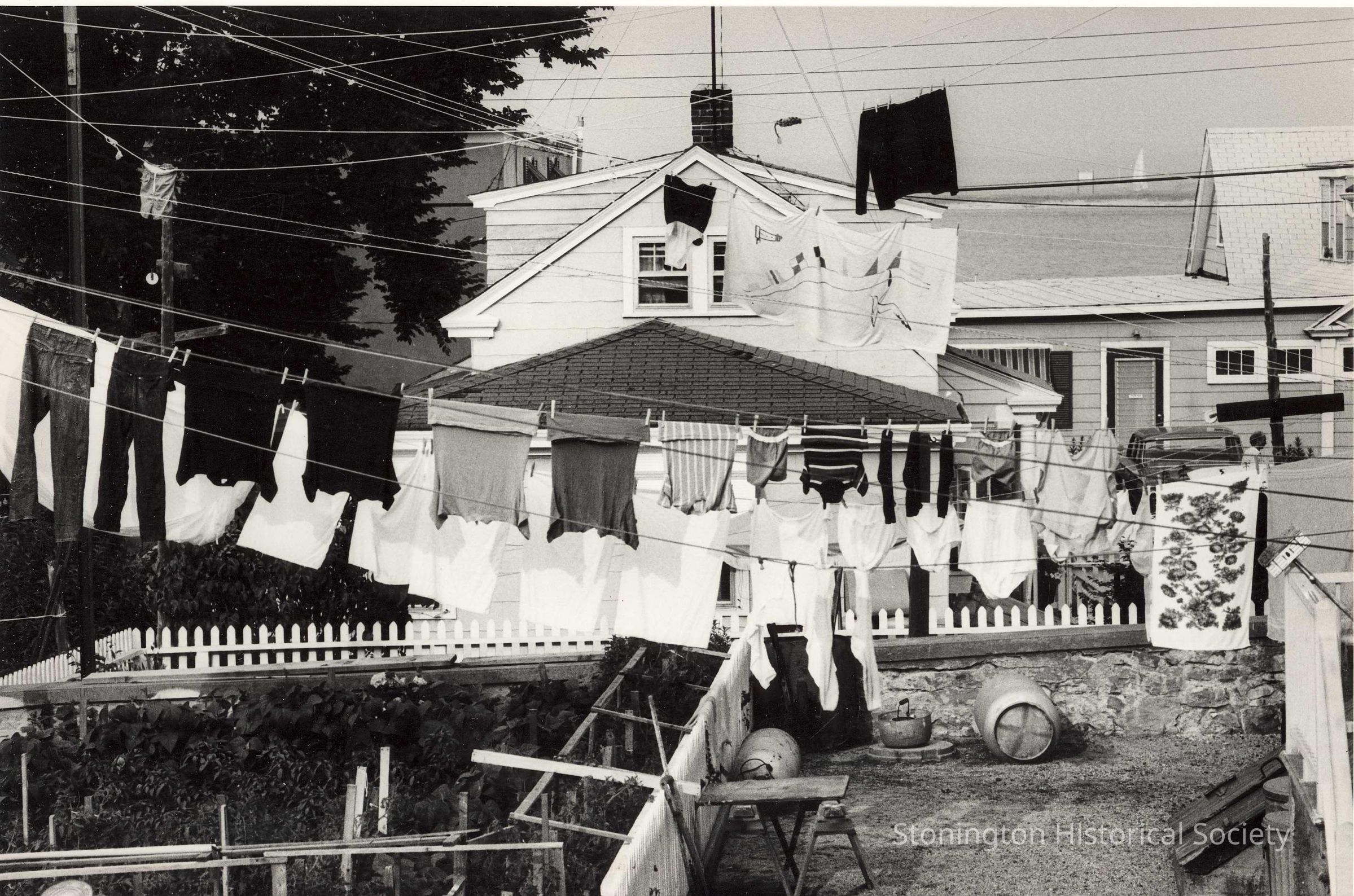 Backyard of home between Trumbull and Diving Streets showing laundry hung out to dry looking east.