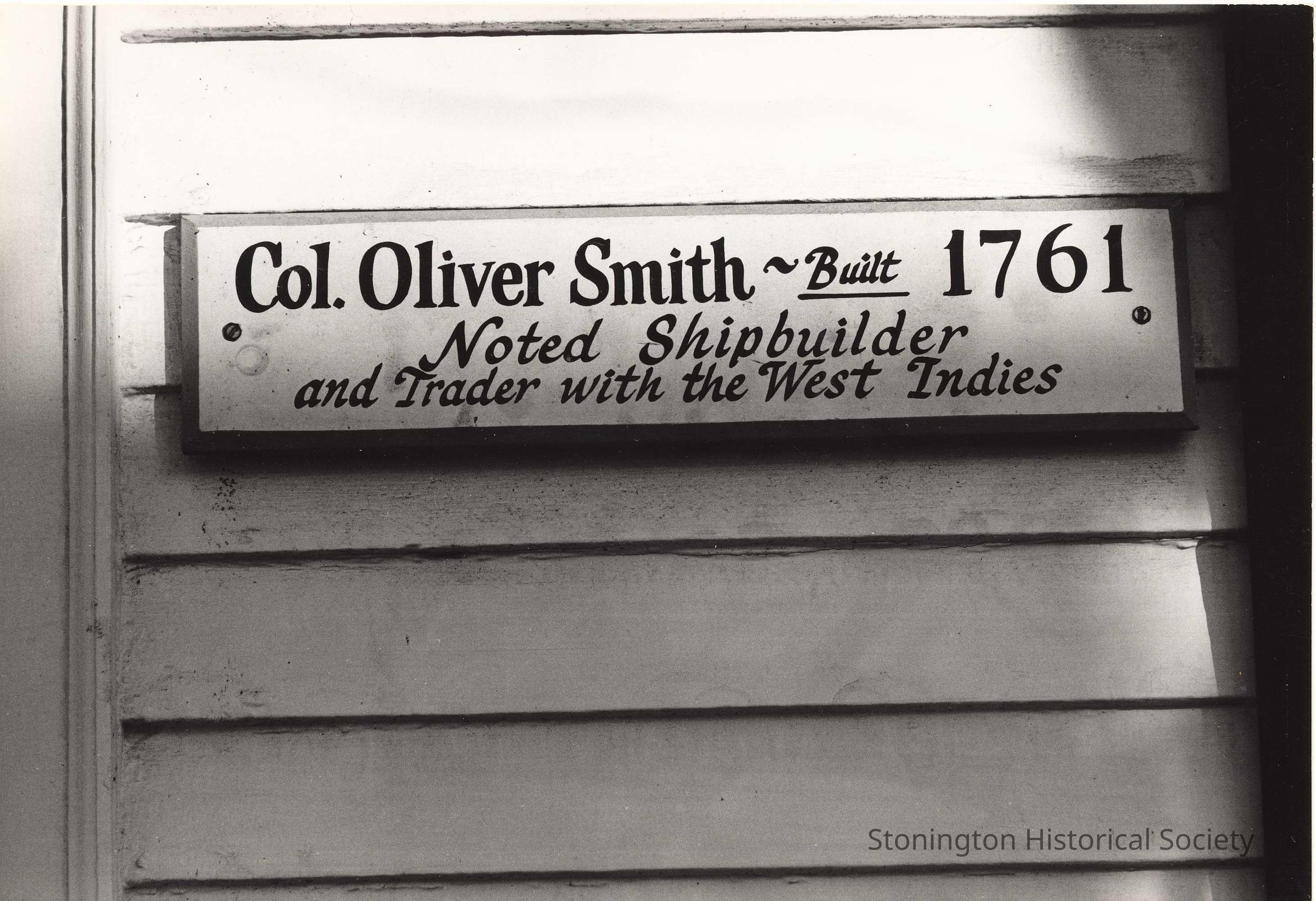 Plaque for "Col. Oliver Smith" house, built 1761