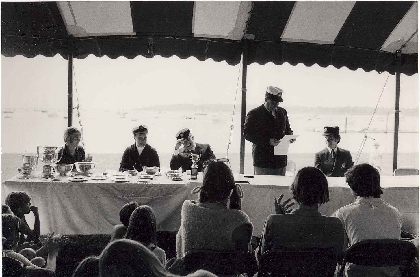 Wadawanuck Club - Awards Day during sailing trophies ceremony. People named left to right: