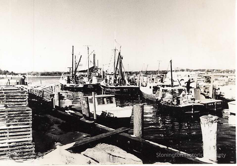 Fishing boats/draggers at town dock. "Betty Ann" on right.