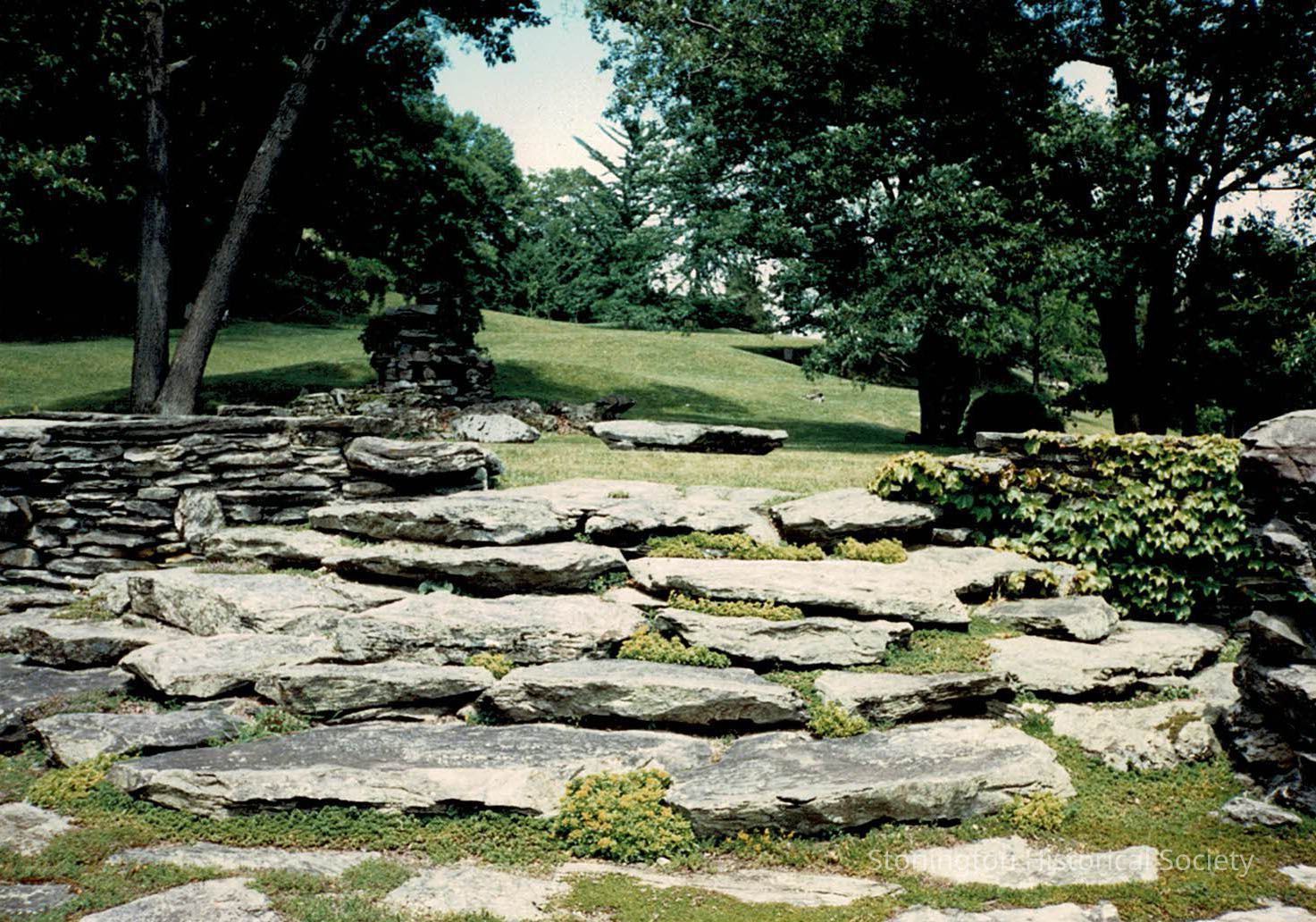 Color photograph of natural stone stairs in landscape. Probably taken in Rollie's yard in Florida.