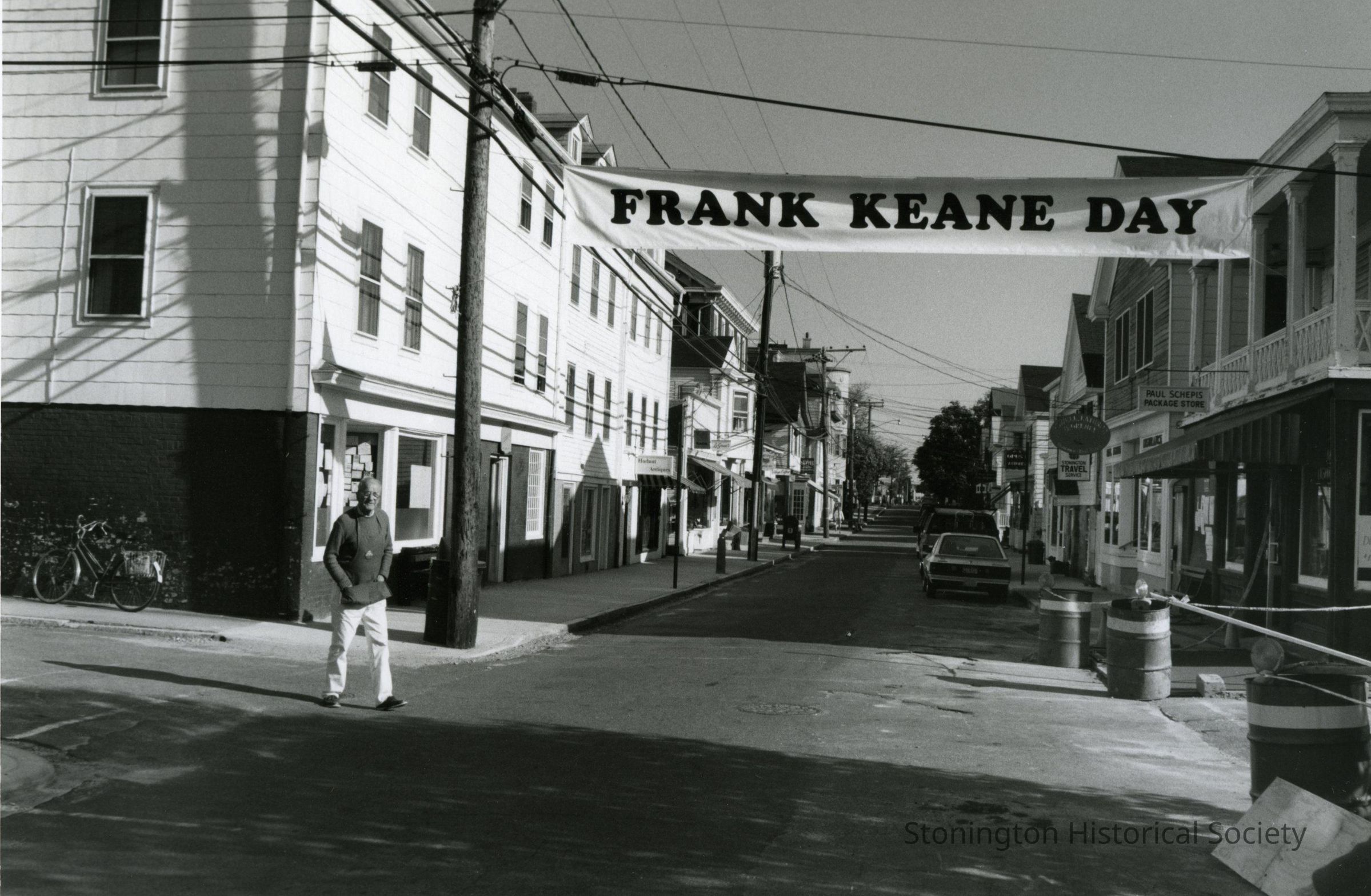 black and white photograph, Water Street, Stonington Borough, "Frank Keane Day", c. 1990 #31