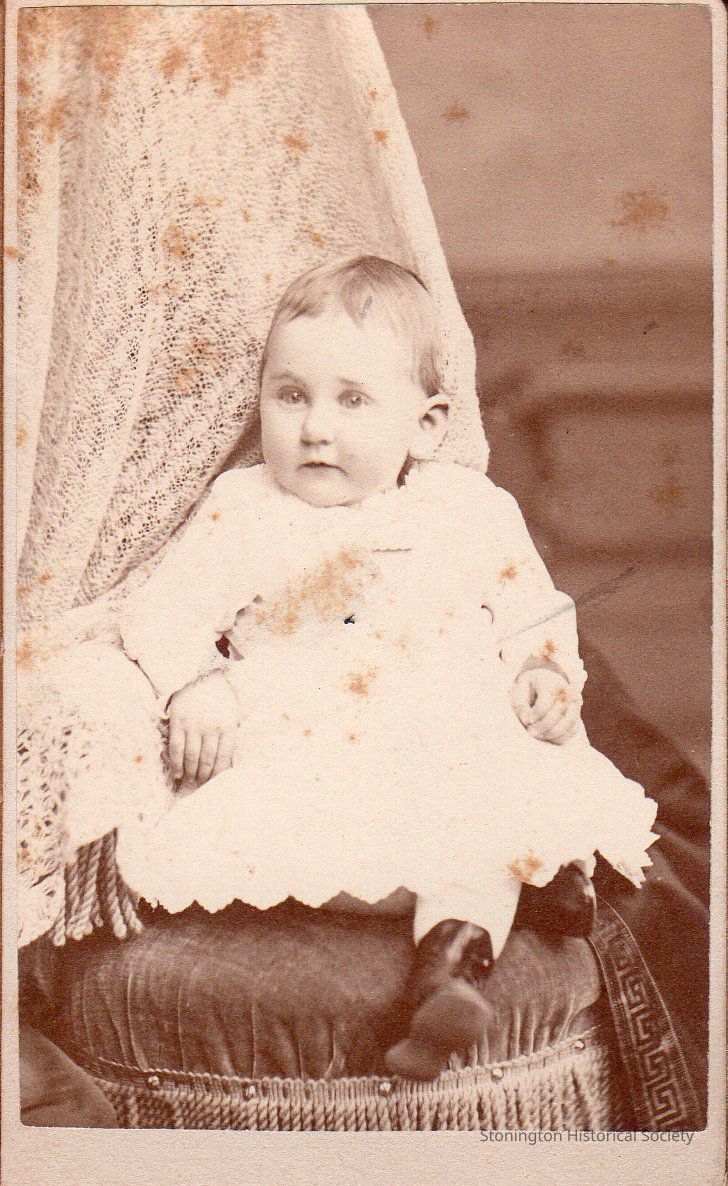 black and white portrait, mounted on board, of Helen Adams (Paffard) as an infant, taken by Metcalf & Wellson, Boston, 1880s